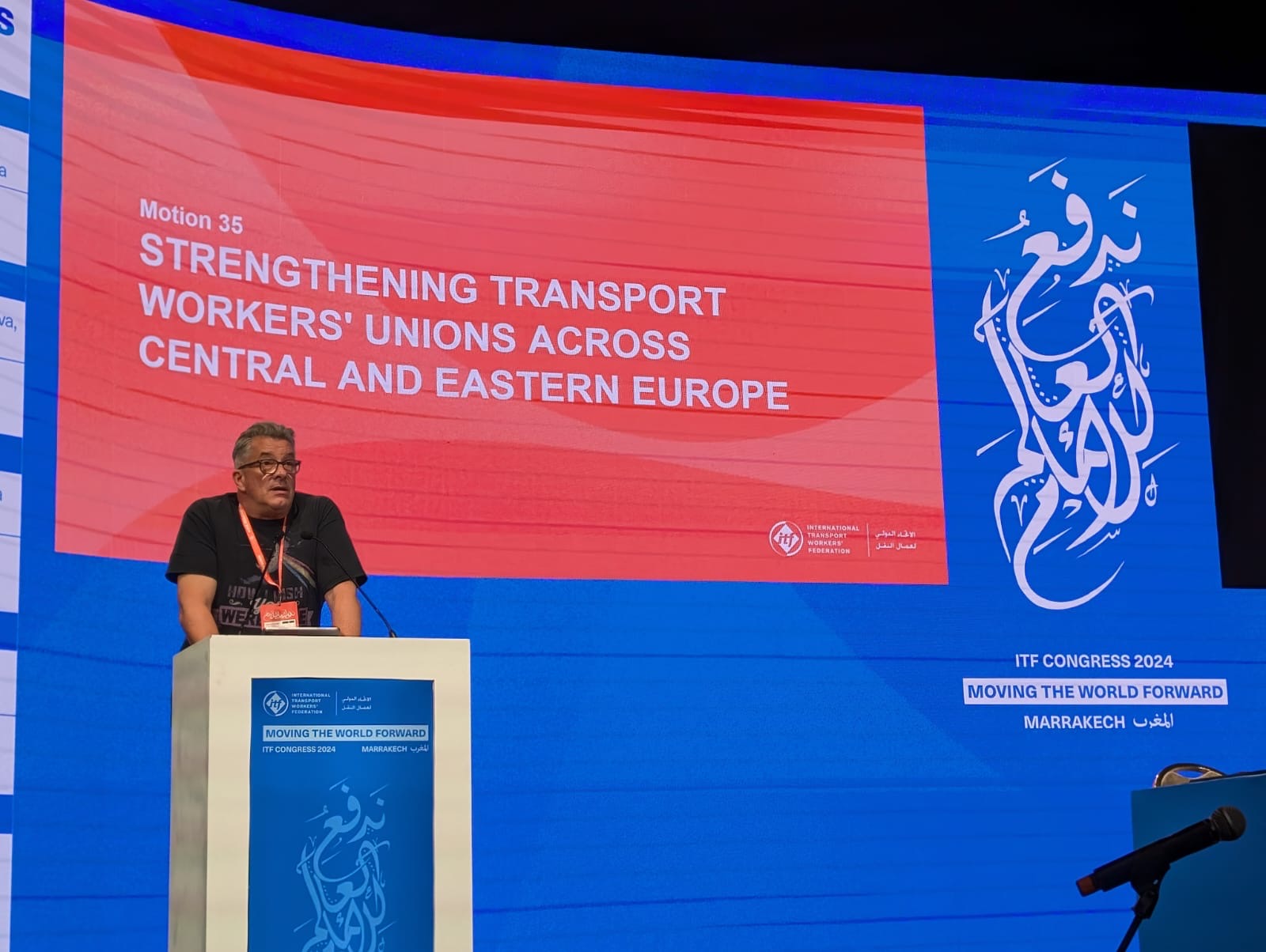 Međunarodna federacija transportnih radnika (International transport workers federation) održala je redovni, 46., kongres u Marrakechu od 13.-19. listopada 2024. godine. Ovo je prvi Kongres ITF-a koji se održao u jednoj od arapskih država. Na Kongresu se okupilo gotovo 2000 delegata i drugih predstavnika sindikata koji predstavljaju milijune transportnih radnika iz cijelog svijeta.